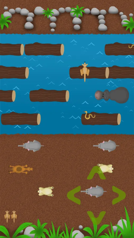 But beware: On the water are not only tree trunks on which you can jump, but also crocodiles and hippos, who don't always mean it nice lynot with you... Make sure that the snake doesn't catch you and bring the kangaroo herd safely into the respective places.