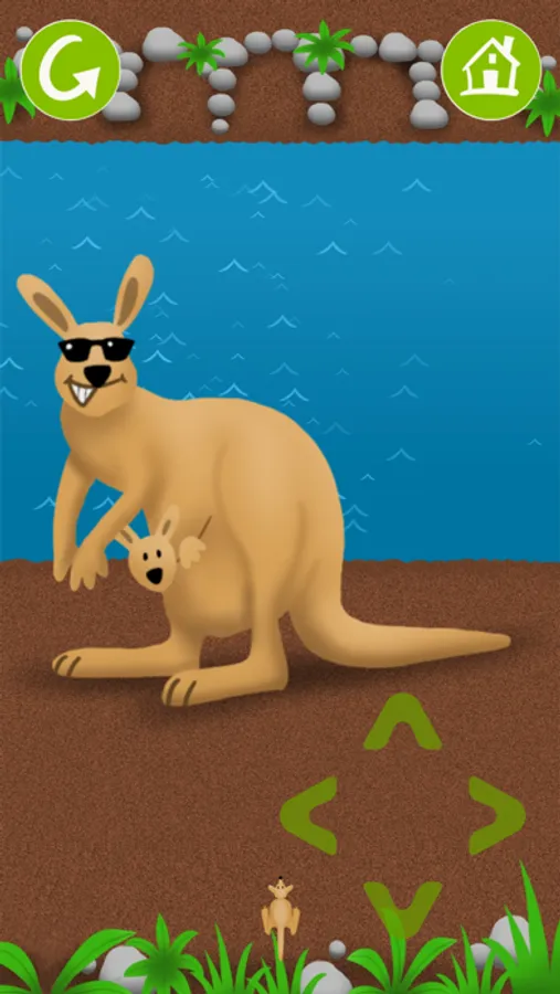Help the kangaroo find his way home via the busy road, over wild waters and tree trunks lying on the water.