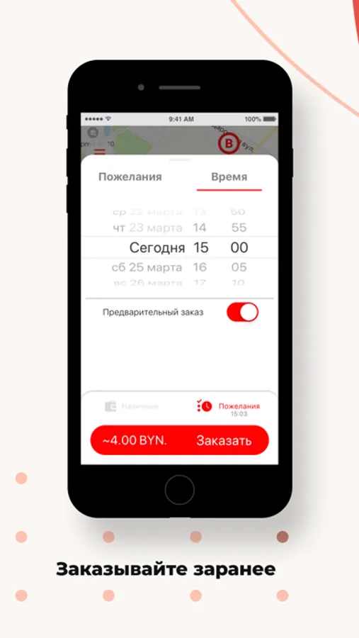 Планируете поездку до аэропорта или на вокзал? Воспользуйтесь функцией предварительного заказа — водитель будет на месте в указанное время.