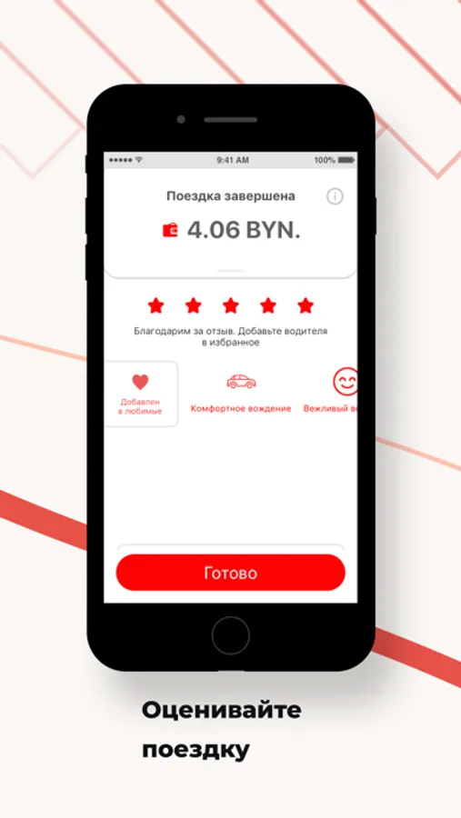 Поставьте 5 звезд водителю, выберите один или несколько готовых шаблонов для оценки или оставьте свой комментарий о работе приложения.