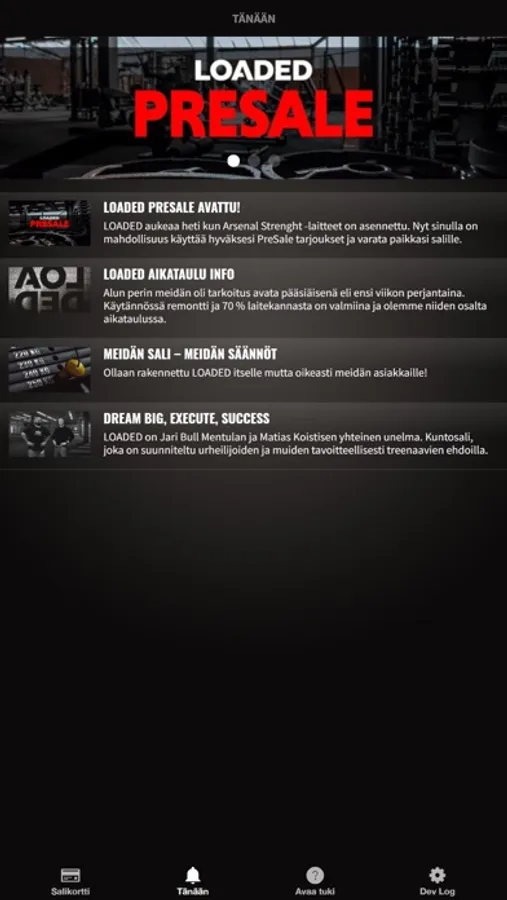 Olit sitten jo Loadedin jäsen tai vasta sellaiseksi haluava, mobiilisovelluksemme on käyttöliittymäsi meidän palveluihimme. Voit sen avulla aloittaa kuntoilut meillä, käyttää mobiilisalikorttia, viestiä asiakaspalvelumme kanssa ja paljon muuta!