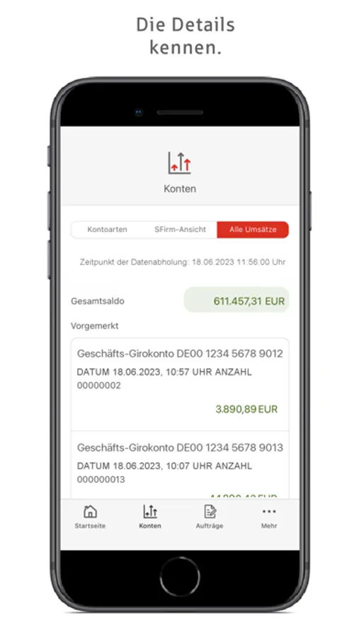 • Es liefert Ihnen Infos zur finanziellen Situation Ihrer Firma, fasst alle Vorgänge rund um Ihre geschäftlichen Konten zusammen und bildet das für Sie Relevante auf Ihrem iPhone bzw. iPad ab.