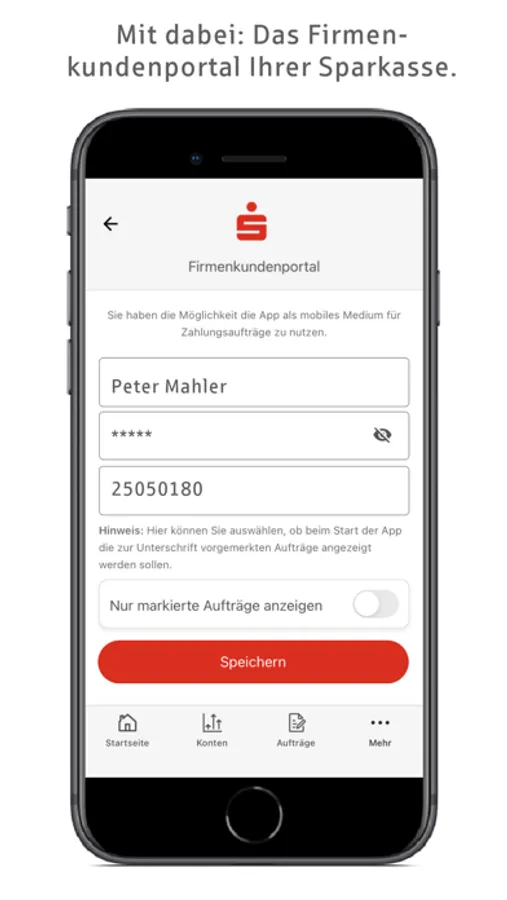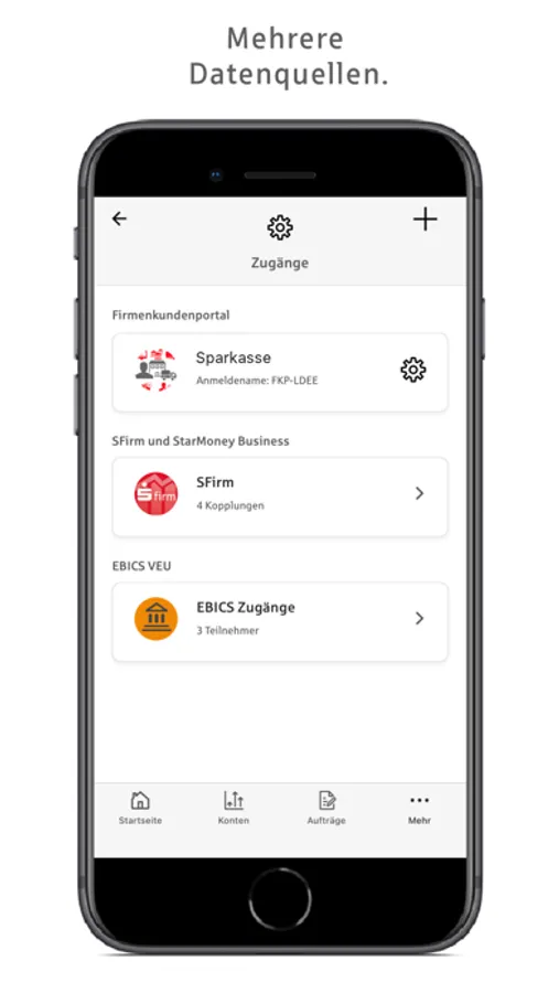 • Ihren Zugang zum Firmenkundenportal Ihrer Sparkasse können Sie direkt in die App einbinden