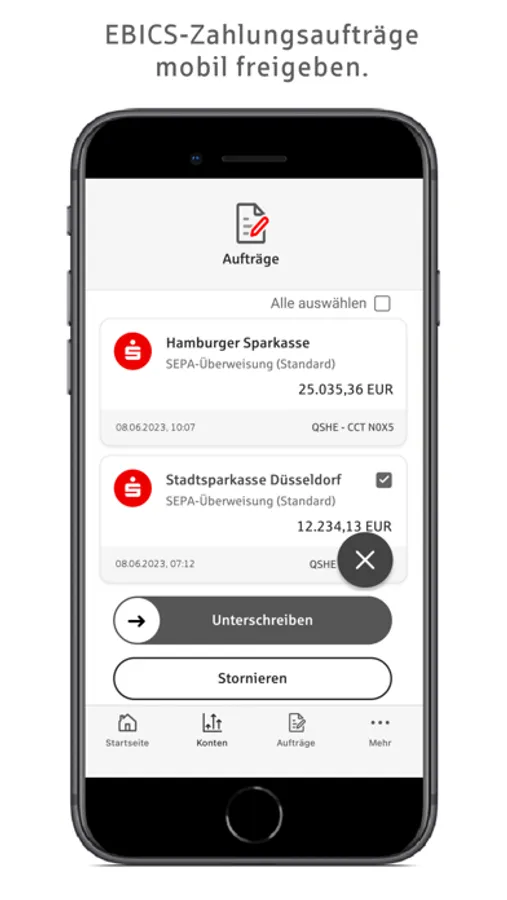 • Voraussetzung für die Bereitstellung von Aufträgen ist der Zugang zum Firmenkundenportal Ihrer Sparkasse oder weitere EBICS-Zugänge