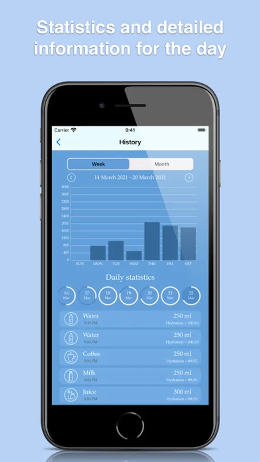 - Detailed information about the water drunk in a day