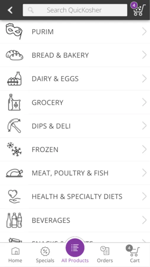 Using the QuicKosher's shopping app will let you search for products and make orders, quickly and easily from your phone.