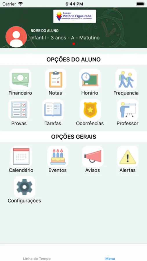 Comunicados, Notícias, Eventos, Calendário Escolar, Financeiro com emissão de Boletos, Notas, Faltas, Ocorrências, Tarefas, Conteúdos, Área exclusiva para publicações do Professor, além de uma Linha de Tempo que mostra os próximos eventos são funções encontradas neste aplicativo.