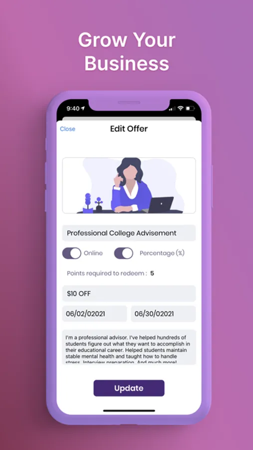 The KemNu Ads mobile app helps you stay connected to your business campaigns while on the go and enables you to market your business directly to all college students and organizations available on the KemNu App. In addition to monitoring your campaigns in real-time, you can review high-impact recommendations to improve performance and take action quickly and easily. You can easily offer exclusive deals, improve brand awareness, and increase sales through targeted advertising.