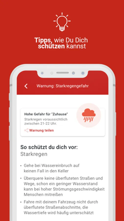 Ab welcher Windstärke sollte ich das Trampolin abbauen und sollte ich morgen noch Zeit zum Schnee Schippen und Streuen einplanen? Mit den Wetter-Warnungen für Dich weißt Du nicht nur, wann & in welcher Stärke eine Wetter-Gefahr an Deinem Ort wahrscheinlich ist. Mit den passenden Tipps erfährst Du außerdem, was Du in der jeweiligen Wetter-Situation tun kannst, um Dich & Deine Liebsten und Dein Hab & Gut besser zu schützen.