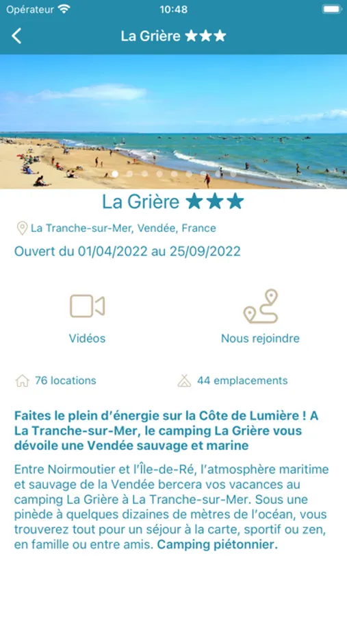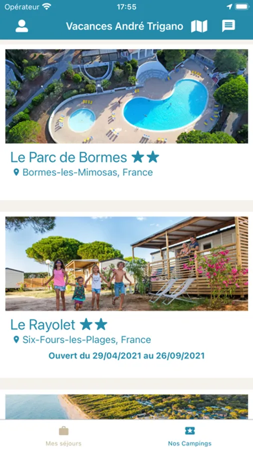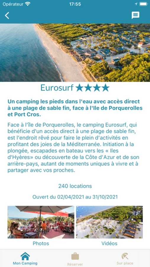 Bravo ! Vous venez de réserver vos vacances dans votre camping préféré. Nous avons le plaisir de vous proposer dans cette application une expérience unique pour réussir votre séjour et découvrir avant votre arrivée les services, activités et animations proposés par le camping. Un gain de temps pratique : informez-nous de votre heure d'arrivée, des options que vous souhaitées réserver, de la venue de votre animal de compagnie, inscrivez-vous aux activités et animations disponibles. Mais aussi profiter sur place des meilleures offres négociées pour vous auprès de nos partenaires, rester informés en temps réel du programme des animations, des horaires des différents services, laisser- nous votre avis, profiter des offres exclusives proposées par votre camping.