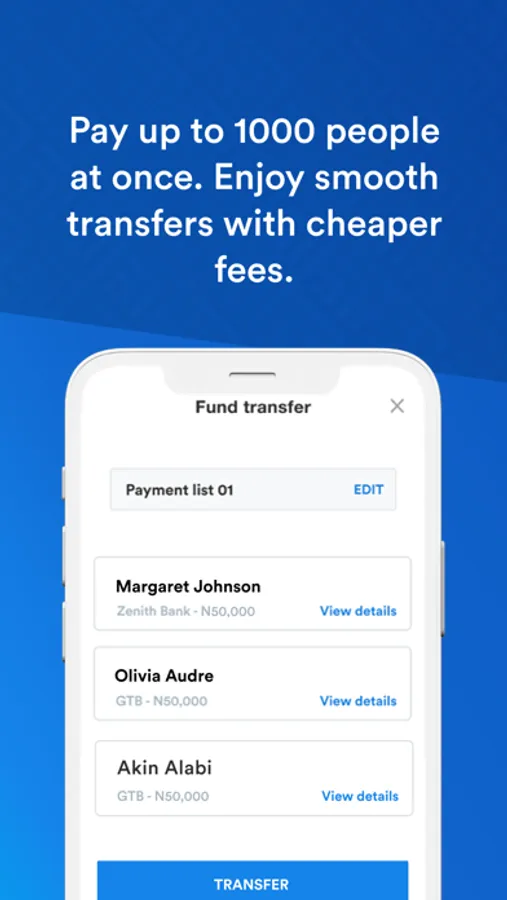 > Make seamless single and bulk transfers to up to 1000 people at once in less time than you used to.