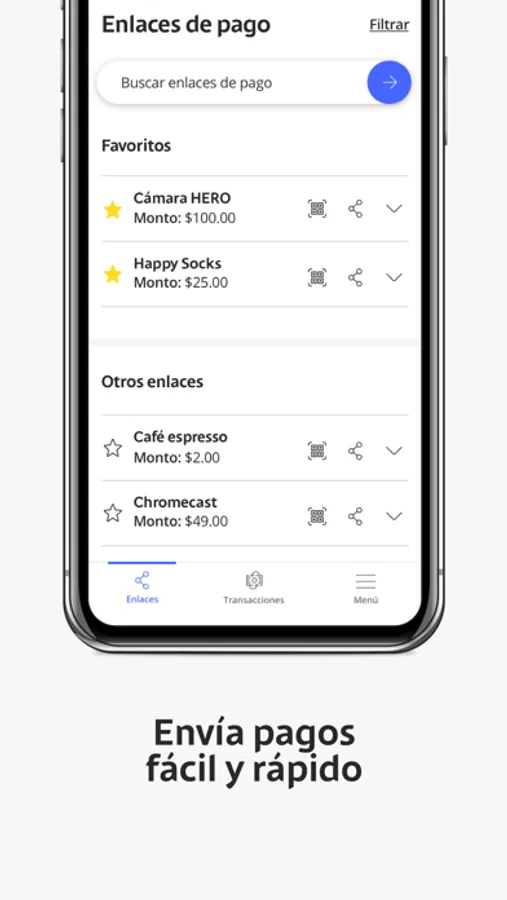 • Visualiza y consulta el detalle de tus enlaces de pago