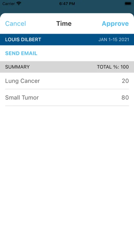 Input, Review and Approve project time by percentage, by hour, by week, half and full months.