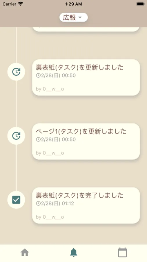タスクの作成や編集、完了、メンバーの参加など様々な行動が一目でわかります!