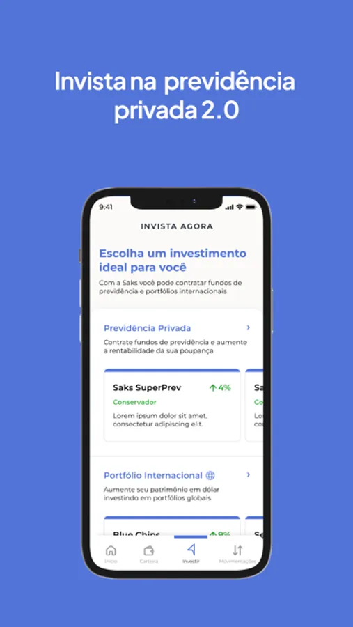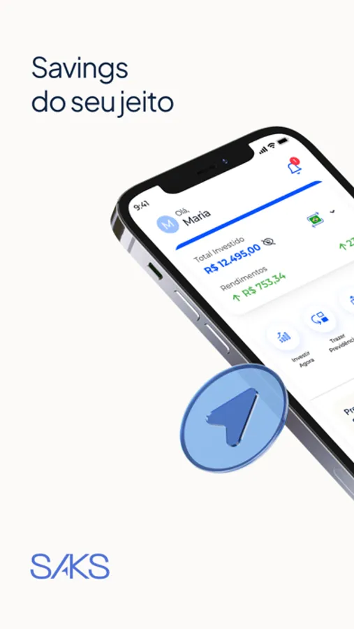 Savings do seu jeito? Só no App Saks. Baixe agora e comece a construir seu patrimônio - de forma local e global.