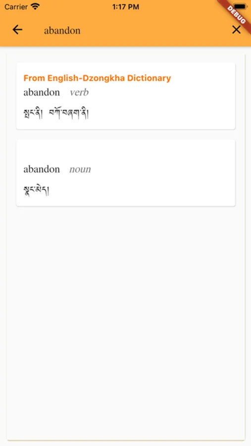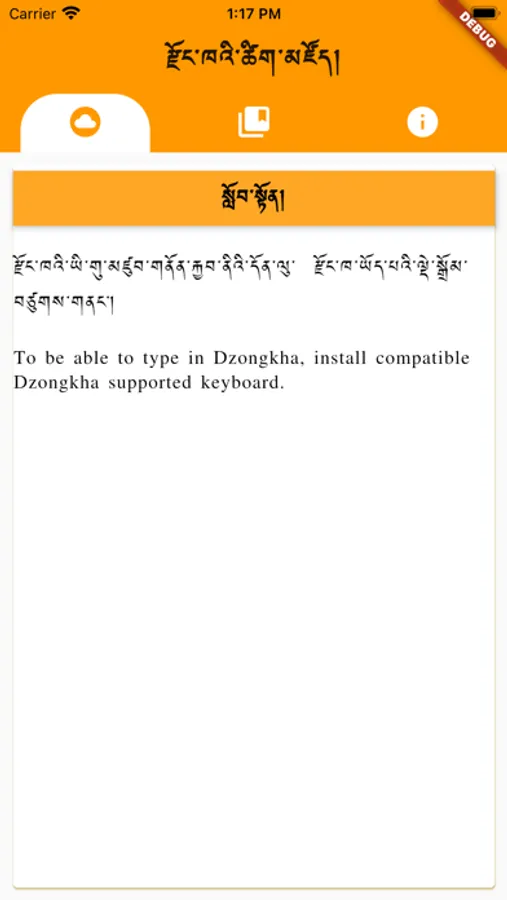 The app consists of major monolingual (Dzongkha) and bilingual(Dzongkha-English and English-Dzongkha) dictionaries of the Dzongkha Development Commission.
