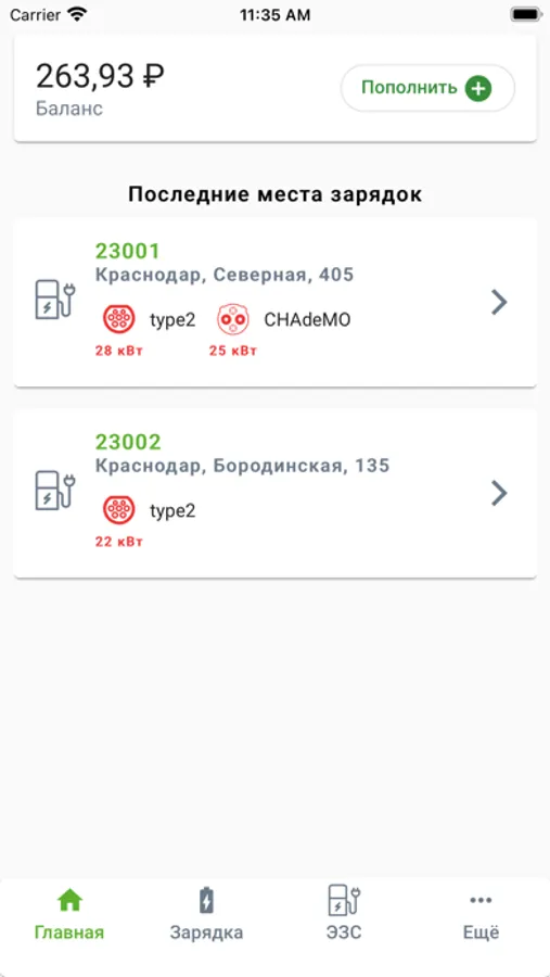 Приложение позволяет найти и взаимодействовать с зарядными станциями сети ChargeNet и партнеров.