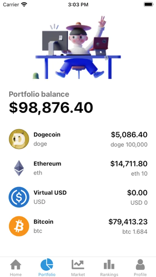 Invest your virtual $100,000 in cryptocurrencies and compete with others in a global leaderboard to show who is the best crypto investor.