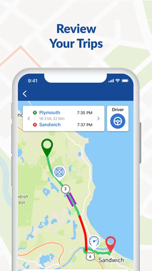 • Review trips on the interactive map to see things like hard braking, acceleration, phone handling, distance driven, and time of day