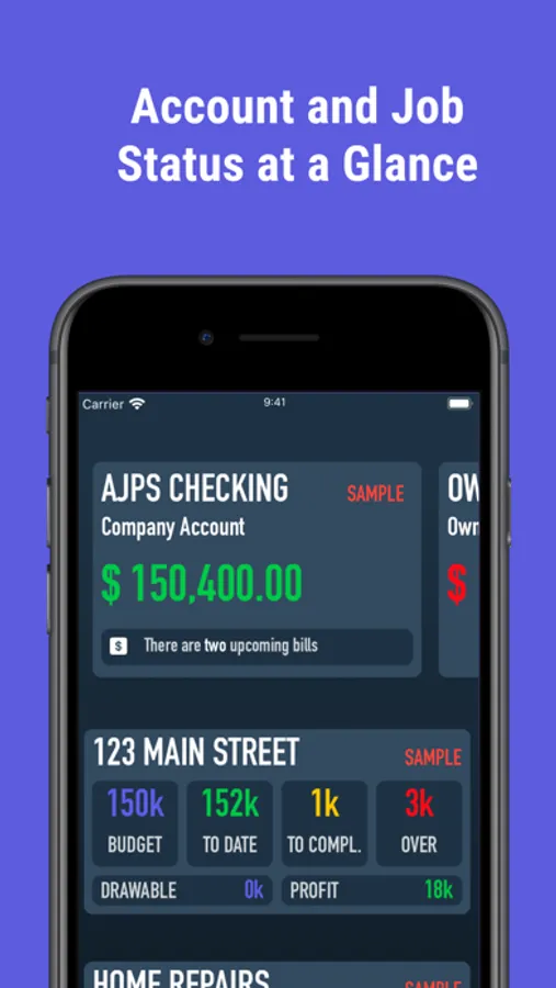 FlipBooks solves that problem. Easily record job-related expenses on the go. Add the accounts you actually use - whether they’re company accounts or personal accounts - and see at a glance how much of your own money you’ve spent on your projects. Quickly create a new job with a budget using our default cost codes - or add your own. See at-a-glance your cost-to-date, your budget, your estimated cost-to-complete, and your end-of-job profit.