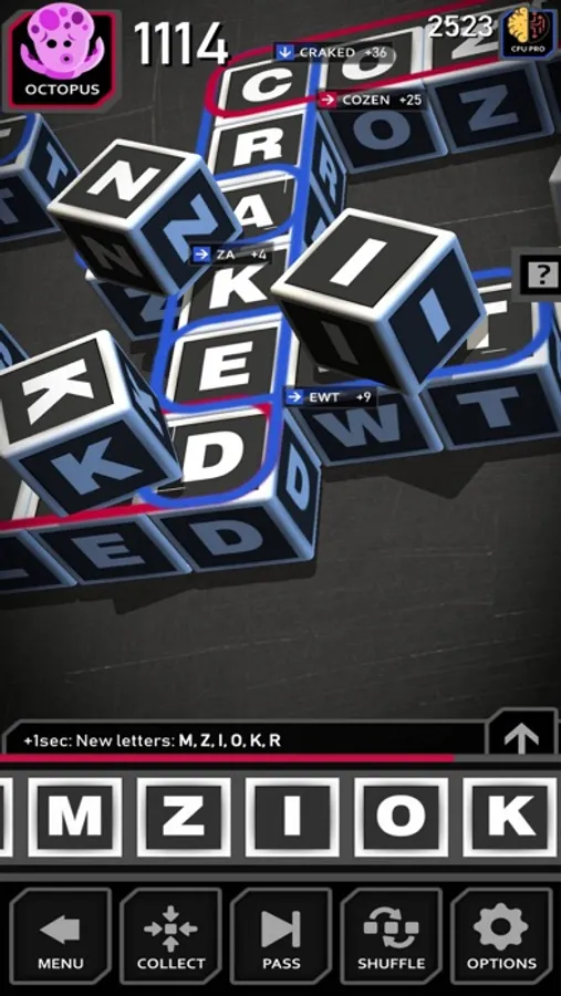 Words are made of cubes that can be moved in an extremely natural and intuitive way. The cubes move according to the rules of physics - they can be tossed, pushed, collided and combined. The game world is endless, you can build infinite spatial structures consisting of cubes. This makes building new words a real fun and experience not available in other word games.