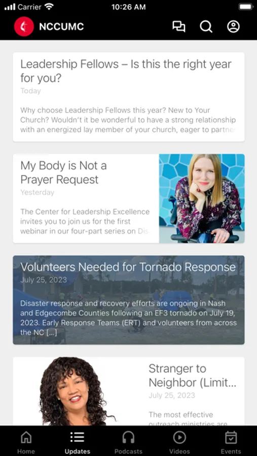 This app will help you stay connected with the North Carolina Conference of The United Methodist Church. With this app you can: watch or listen to videos and podcasts; stay up to date with push notifications; and see the latest updates and events happening throughout the Conference.