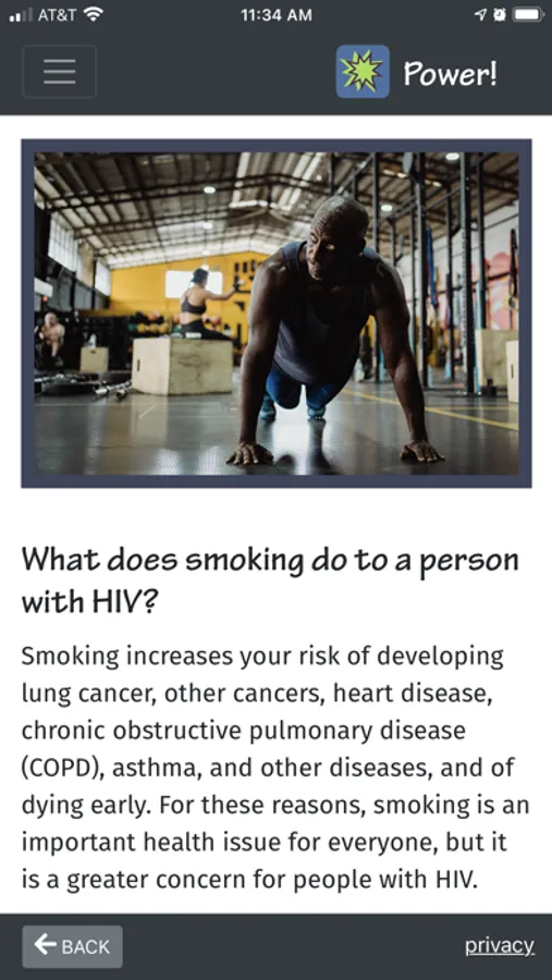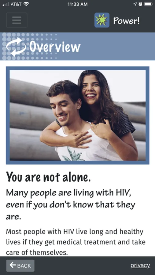 The Power Knowledge! app is a sexual health education tool for people living with HIV. Power! gives an overview of issues pertaining to persons who are HIV positive. It is also a place that friends and family can use to discreetly obtain basic information about various aspects of living with HIV.
