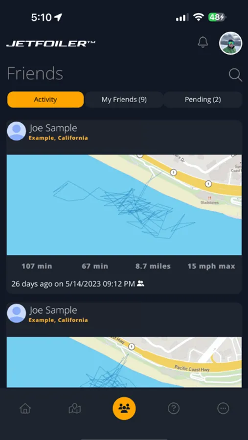 Be part of a community of eFoil enthusiasts. Jetfoiler lets you view your friends' sessions and those of public profiles. Leave comments, share your experiences, and find inspiration for your next ride.