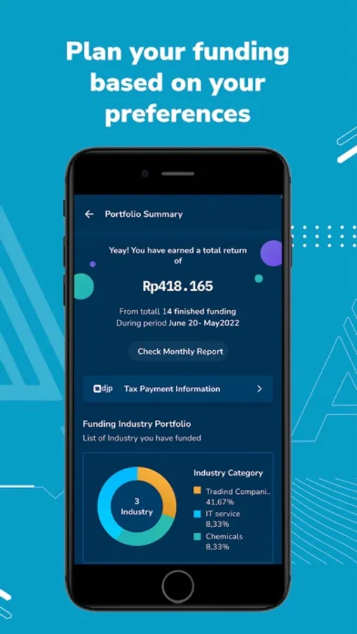 Channel your funds to selected MSMEs from various industries that need sharia financing with their invoice guaranteed. Enjoy returns of up to 16% per year from your funding after the MSMEs invoice is paid off.
