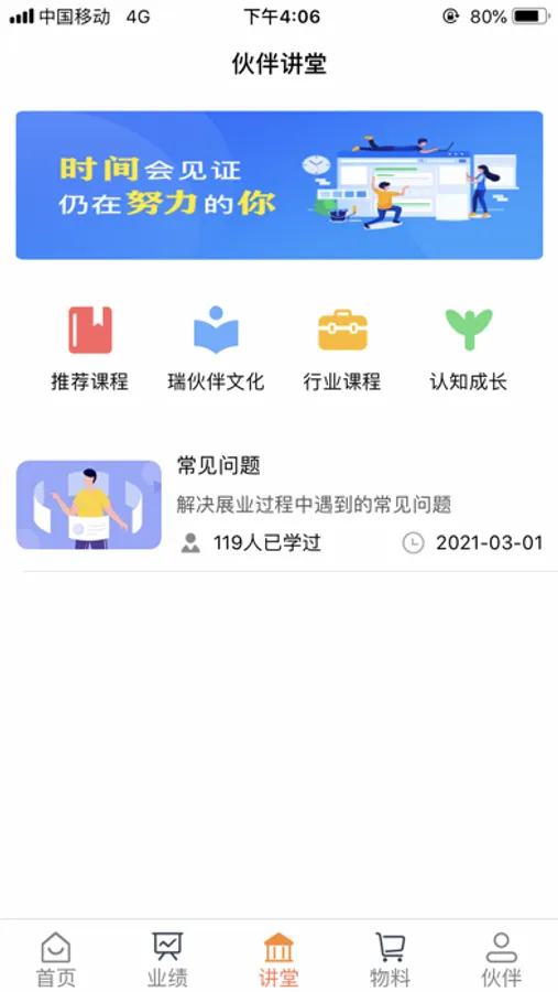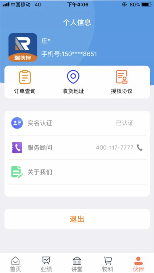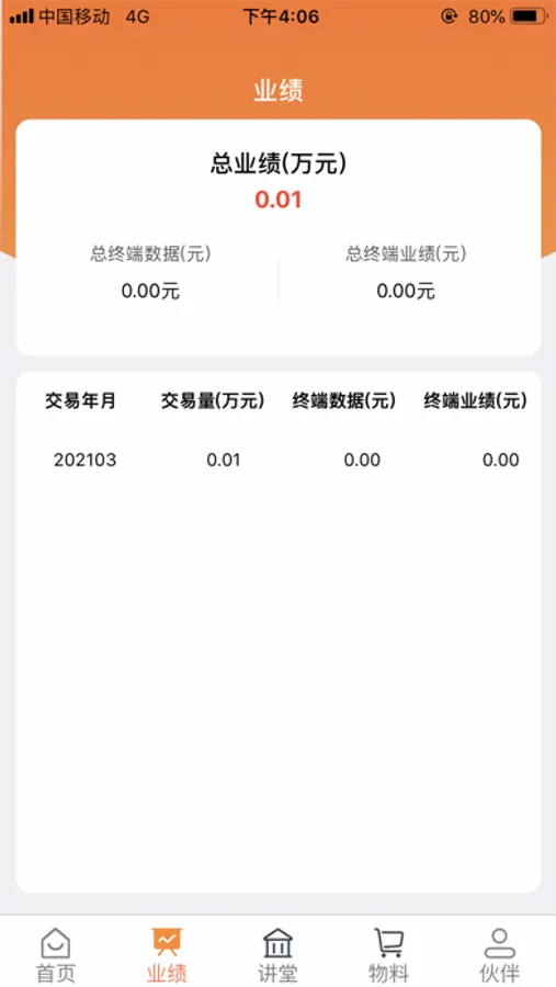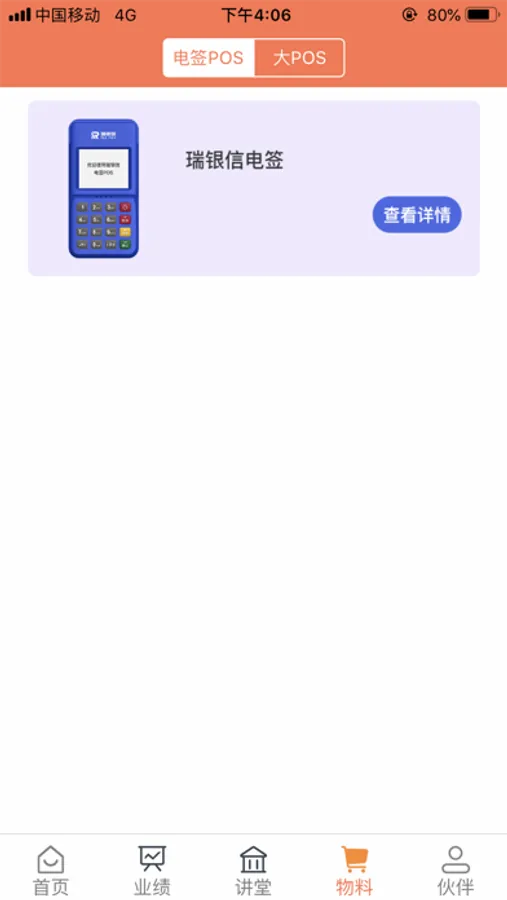 主要功能:我的终端 我的商户 伙伴讲堂 每日晒图 业绩 物料 伙伴等
