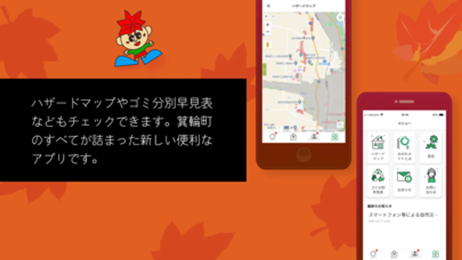 ◆町内のハザードマップ表示やゴミ分別辞典など地域に密着したコンテンツをたくさん含んでいます。