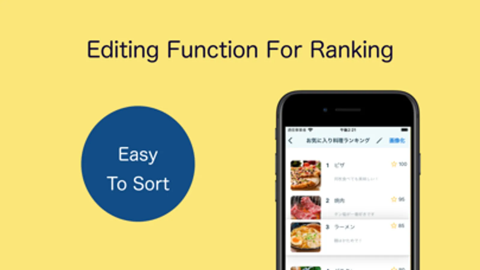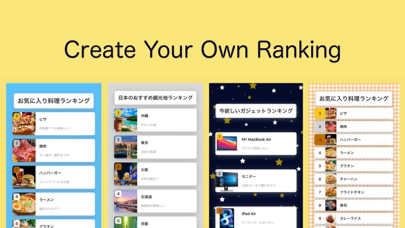 You can easily edit and sort the ranking items, and you can share your ranking on SNS.