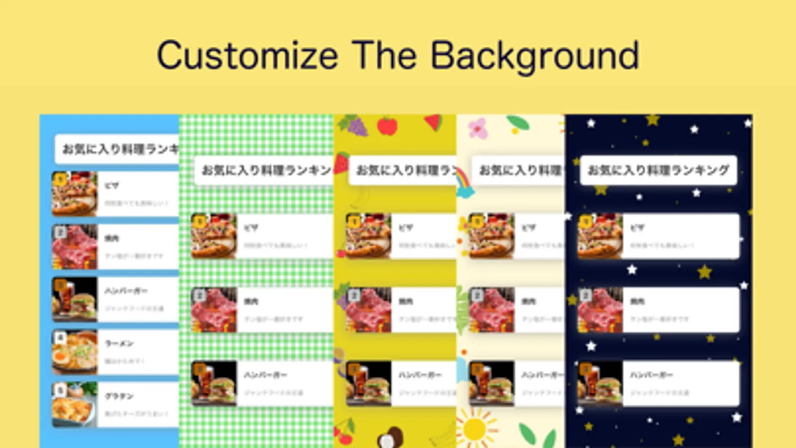 With the purchase of Rank Plate +, you can create rankings with more design backgrounds.