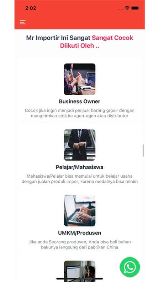 Menjadi Member Mr Importir, anda akan belajar dan Praktek bagaimana caranya belanja dari Pabrikan di China hanya dengan memanfaatkan Laptop dan Handphone saja. Jadi anda akan menghemat banyak biaya dan waktu karena tidak perlu terbang langsung ke China.