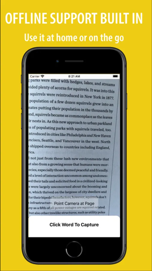 In order to use Word Capture, your device must support the newest major version of iOS on your iPhone and you must give Word Capture access to your camera.