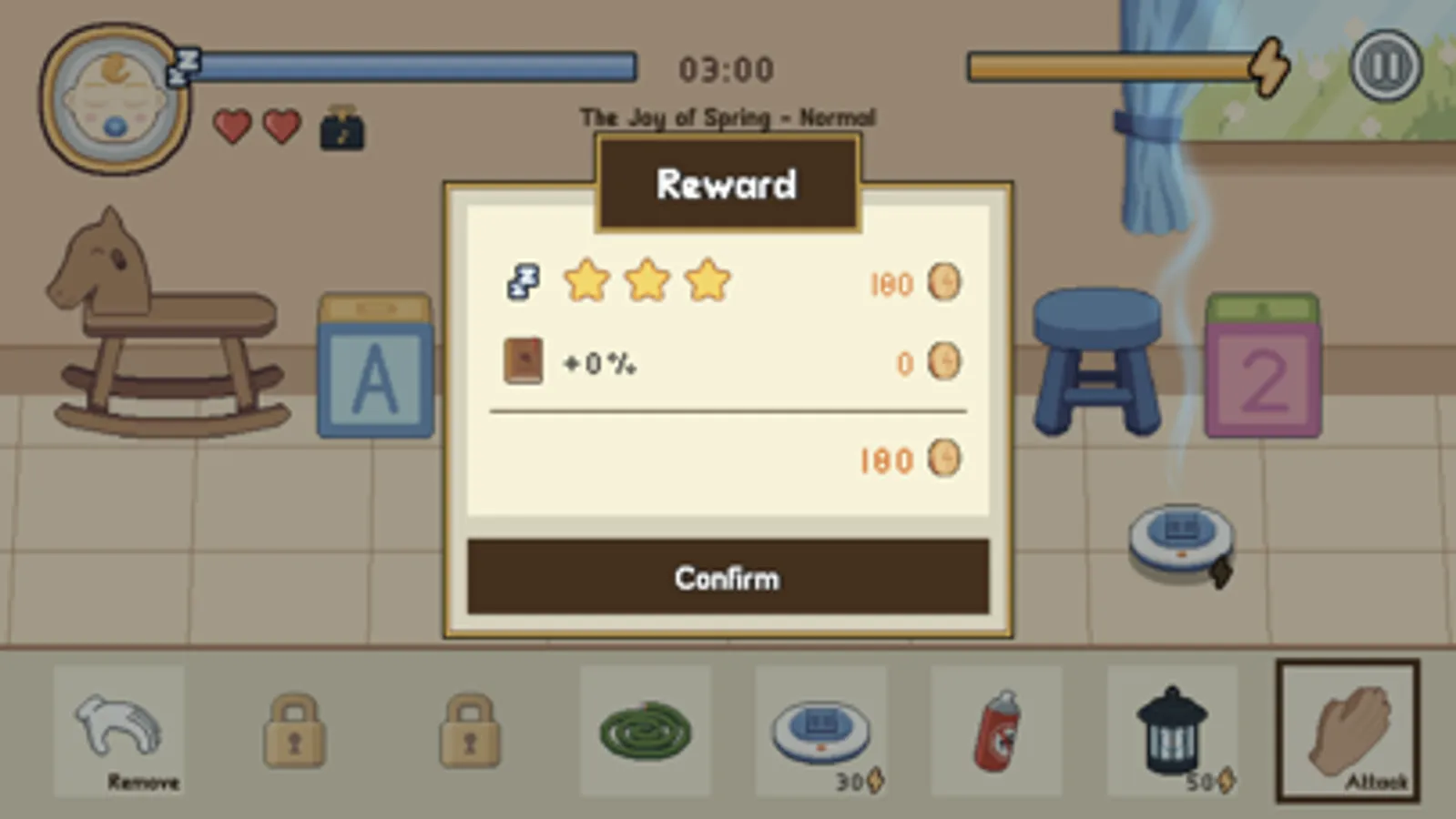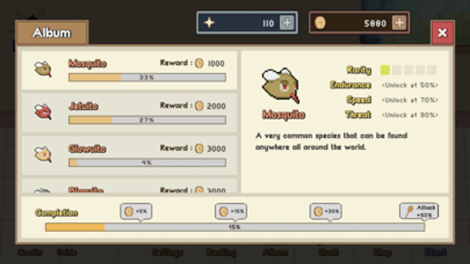 • Earn coins to purchase different kind of tools to assist you in eliminating the mosquitoes.