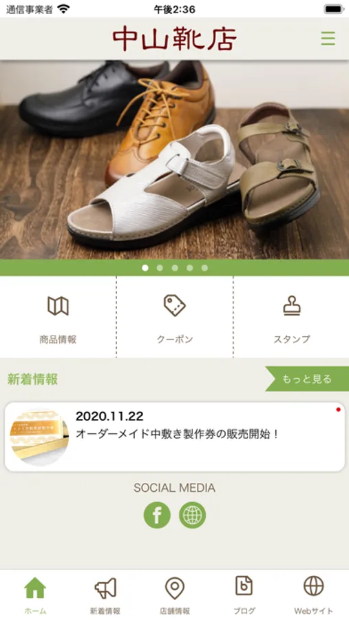 中山靴店の商品やイベント、その他お得な情報を受け取ることができます。