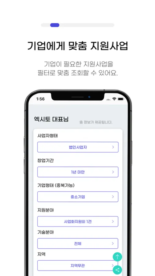 사업자형태, 기업형태, 창업기간, 지원분야, 사업분야, 기술분야, 지역으로 분류된 지원사업을 빠르고 편하게 찾을 수 있어요.