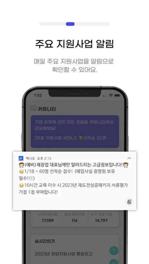 매일 스타트업 관련, 중소기업/소상공인을 위한 자금 지원 등에 뉴스를 확인할 수 있으며, 다른 기업들과 다양한 주제로 교류할 수 있어요.