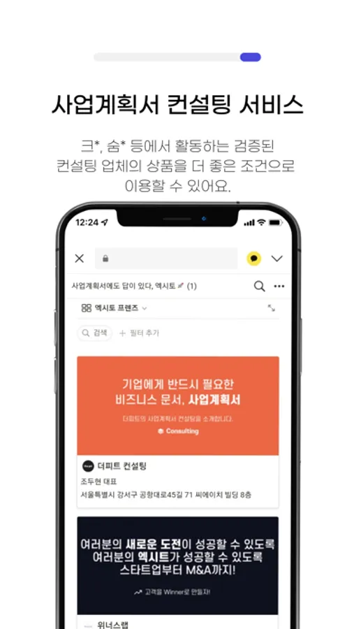 크*, 숨* 에서 활동하는 검증된 컨설팅 업체의 사업계획서 자료 및 컨설팅 상품을 이용할 수 있어요.