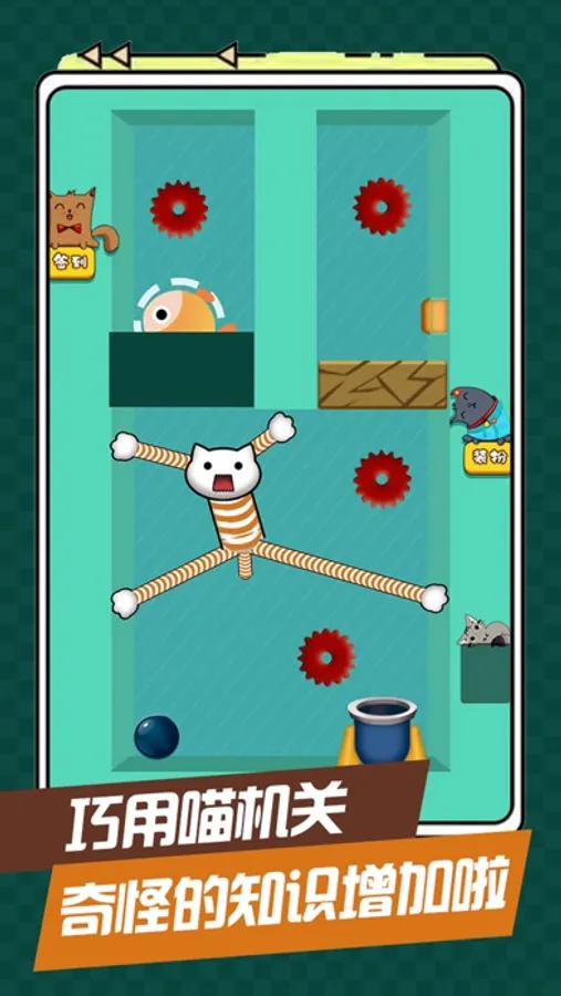 《我是一只喵》是一款滑稽搞笑的休闲解谜类游戏。玩家将扮演一只机智勇敢又贪食的喵喵,不惧阻挠,斗智斗勇,历经千辛万险,也要吃到那条鱼。游戏中设有多种机关路障,简单的小木箱,挪开即可;致命的锯齿轮,一碰就没;团长的意大利炮,炮轰大门。这些都是游戏中的小技巧,再加上魔鬼的步伐,才能顺利吃到鱼。注意!一定要一步一步来,小心着走,步子迈大了,容易扯着蛋。喵也会疼的,喵呜~