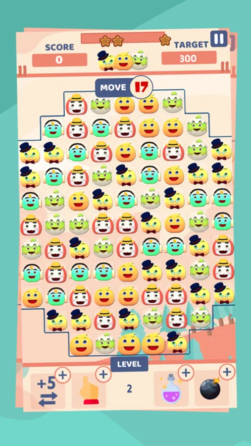 To play, drag the emojis on the puzzle board over a similarly colored emoji – when you match 3 or more of the same colored emojis, you get sweet combos and beat the addictive puzzle!