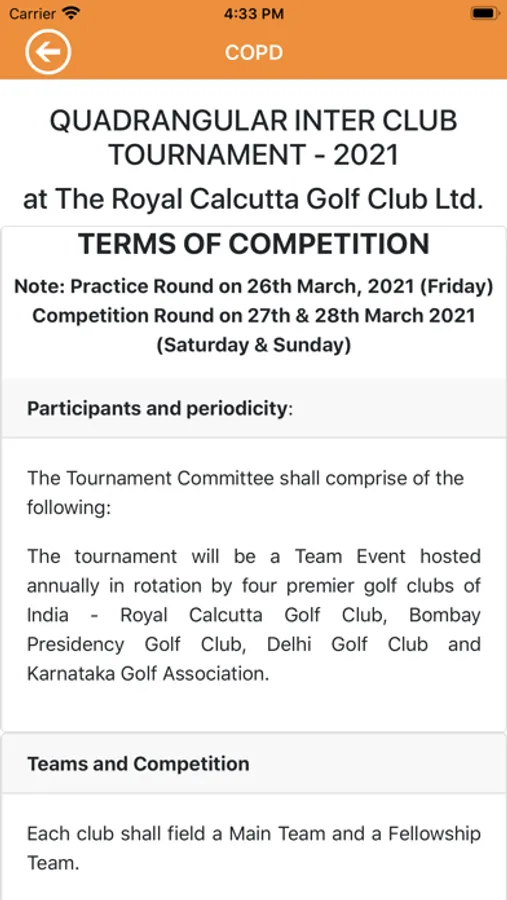 The Main Team will comprise 12 members selected by each club from their best players complying with qualifying criteria and shall mandatorily include either the President/Head of Institution or Golf Captain or equivalent at the choice of the club concerned and he shall be one of the participants in the Main Team.