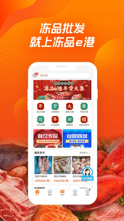 冻品e港APP为冻品批发卖家提供发布商品信息服务、店铺推广服务、行情通及买卖通等会员服务以及来访客户、询单客户、意向客户等商机服务。