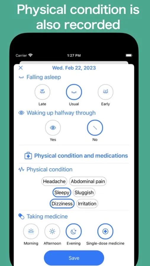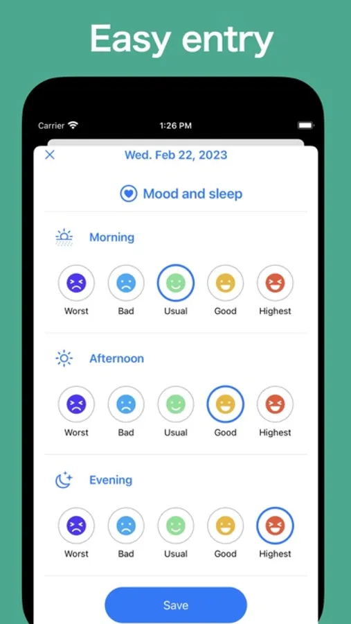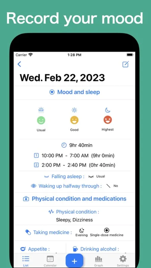 You can customize the items to be recorded, your mood, physical condition, etc.