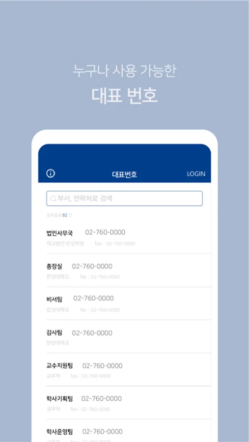 한성대학교 모든 부서의 전화번호를 검색하여 사용할 수 있습니다.