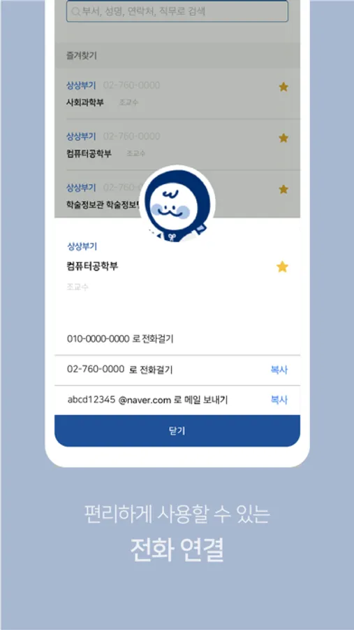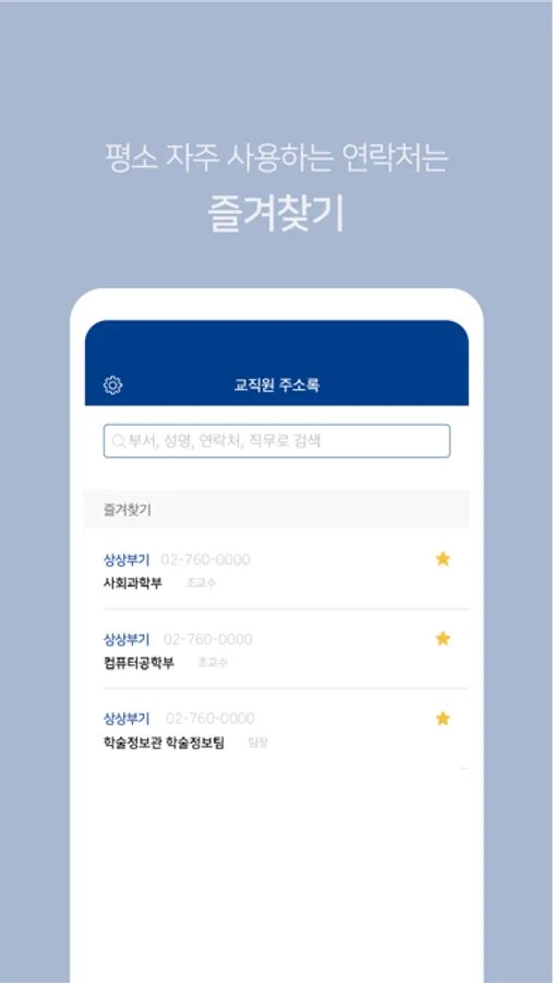 자주 찾는 연락처는 즐겨찾기 등록이 가능합니다.