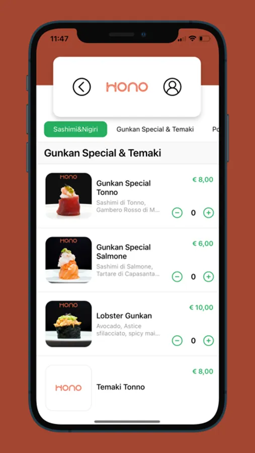 Sfoglia il nostro menu all'interno dell'applicazione, ordina e aspetta solo di gustarti il tuo piatto preferito direttamente a casa tua oppure vienilo a ritirare!