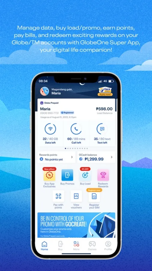 Manage data, buy load/promo, earn points, pay bills and redeem exciting rewards on your Globe/TM accounts with GlobeOne Super App, your digital life companion!