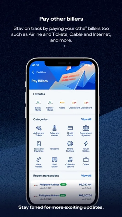 · Stay on track by paying your other billers too such as Airline and Tickets, Cable and Internet, and more.